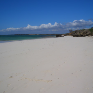 White sandy beaches with calm, turquoise waters.